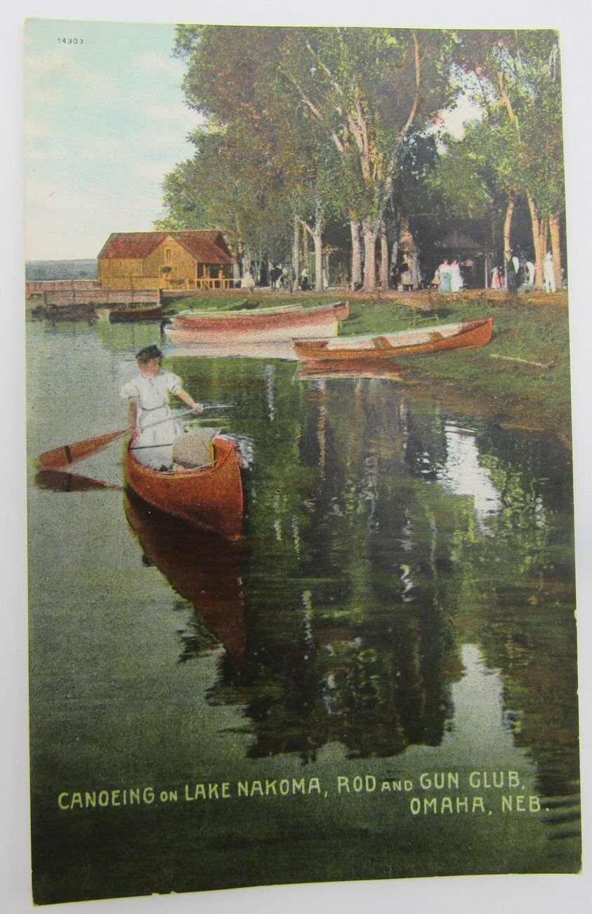 Offered is a 1912 Canoeing on Lake Nakoma, Rod and Gun Club Omaha, NE Unused Postcard