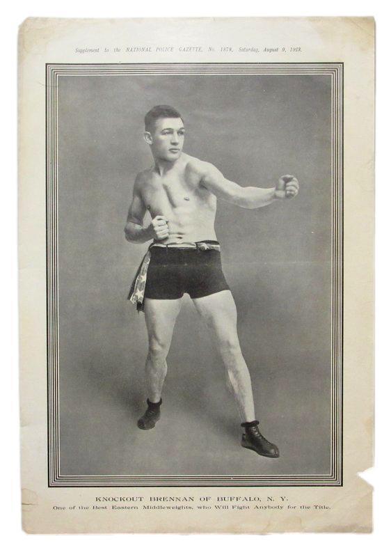 1913 National Police Gazette Magazine Knockout Brennan 11x15 Supplement Poster