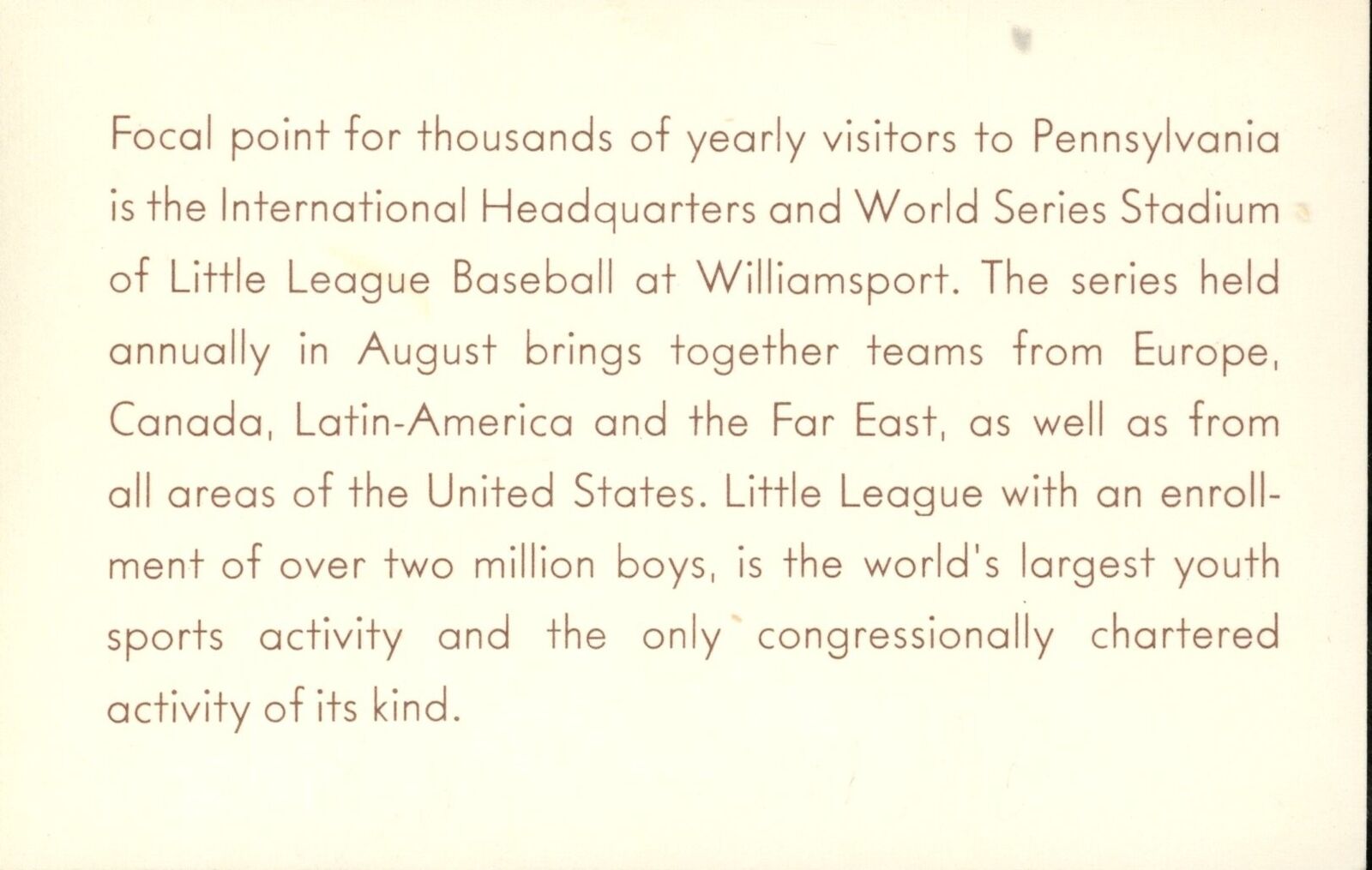 Offered is a 1940's Postcard Little League Williamsport, PA.