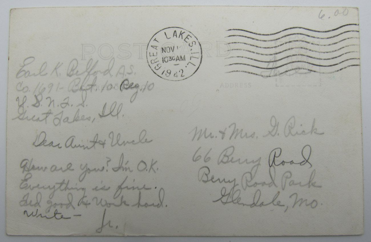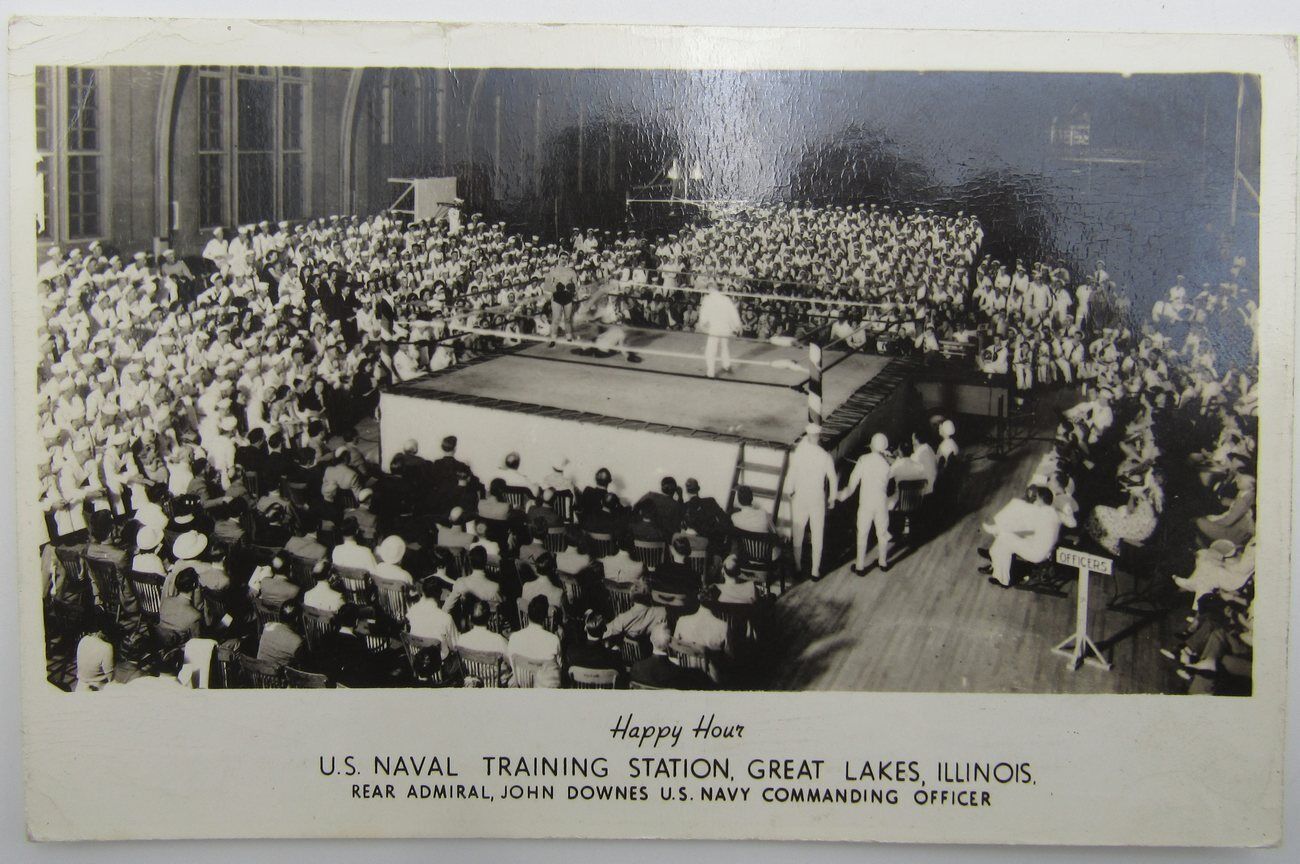 Offered is a 1940's WWII Great Lakes, IL US Naval Training Station Happy Hour Postcard