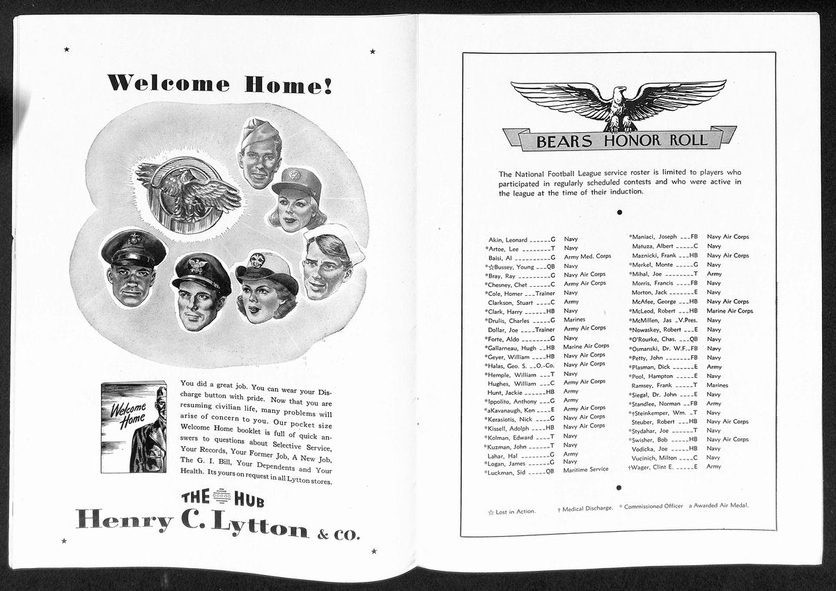 1945 Cleveland Rams vs. Chicago Bears NFL Football Game Program 192867