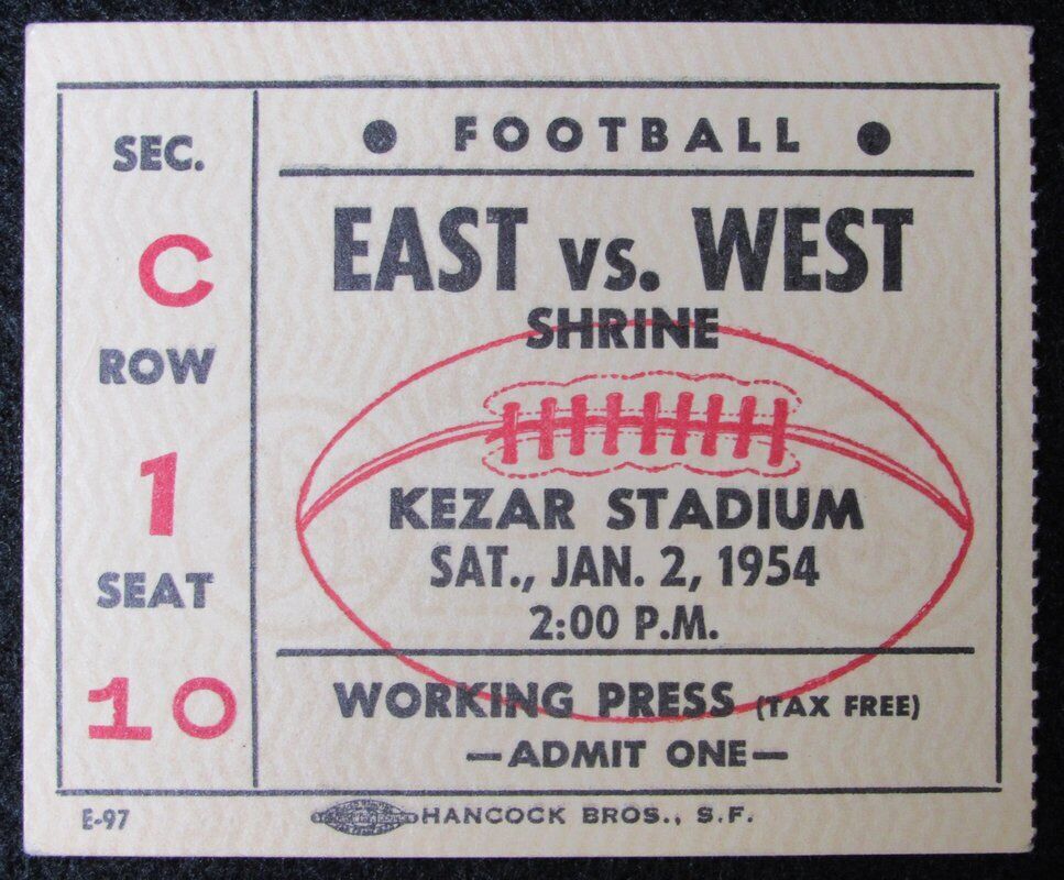 1951 East vs. West Shrine Game Ticket Stub Kezar Stadium San Francisco, CA