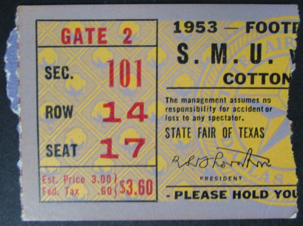 1953 Southern Methodist Home Game Ticket Stub from the Cotton Bowl 145434