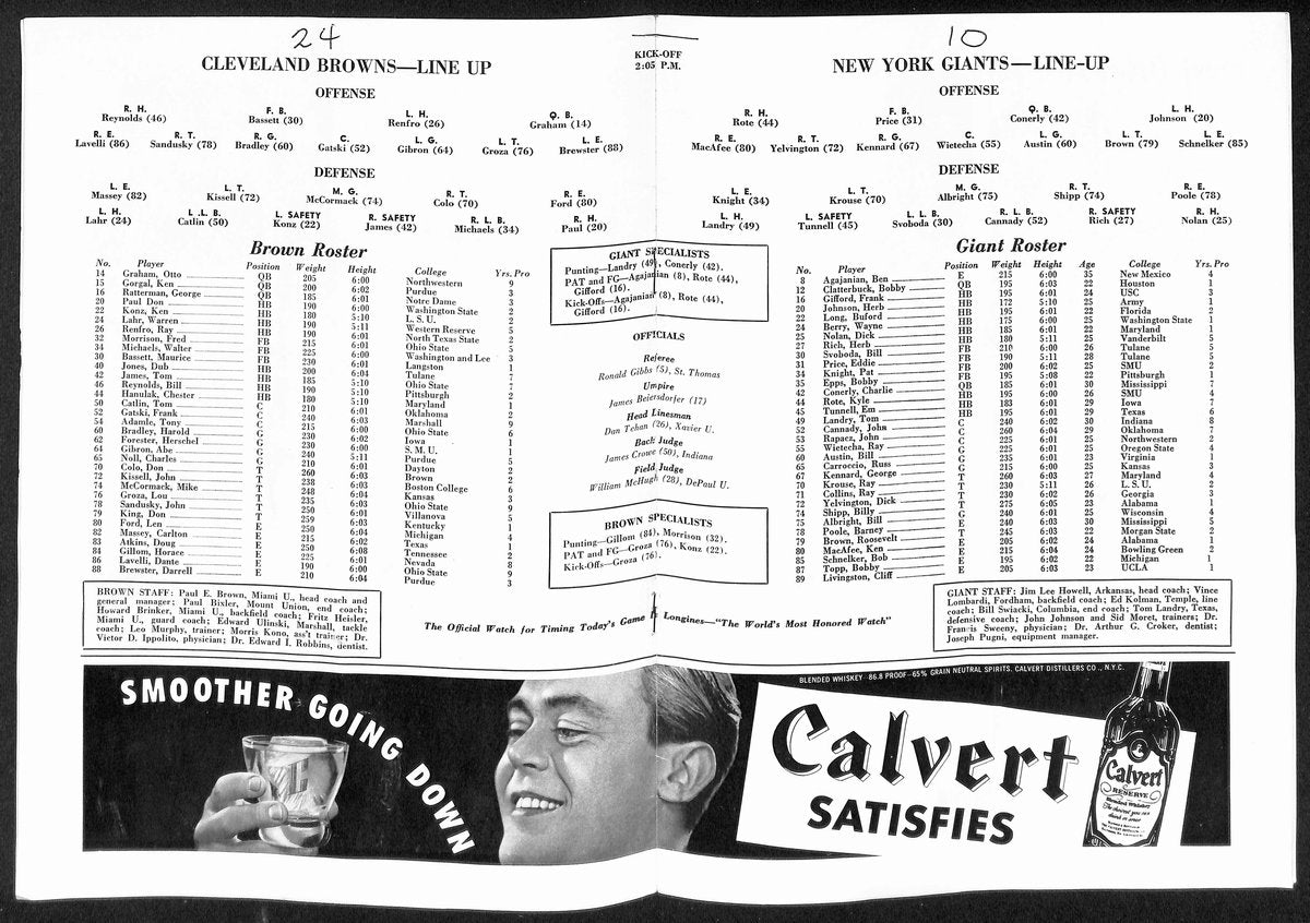 1954 New York Giants vs. Cleveland Browns NFL Football Game Program 196088