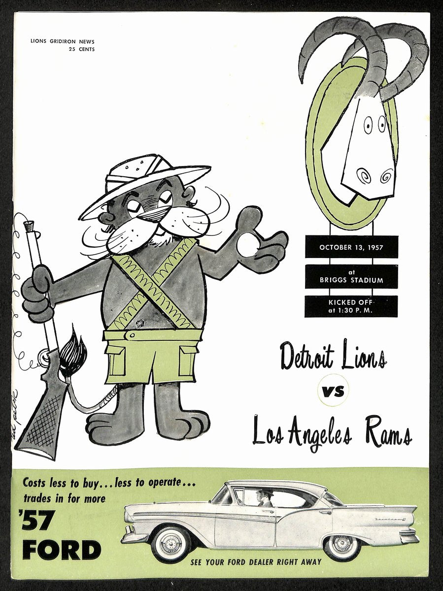 1957 Detroit Lions vs. Los Angeles Rams NFL Football Game Program 196122
