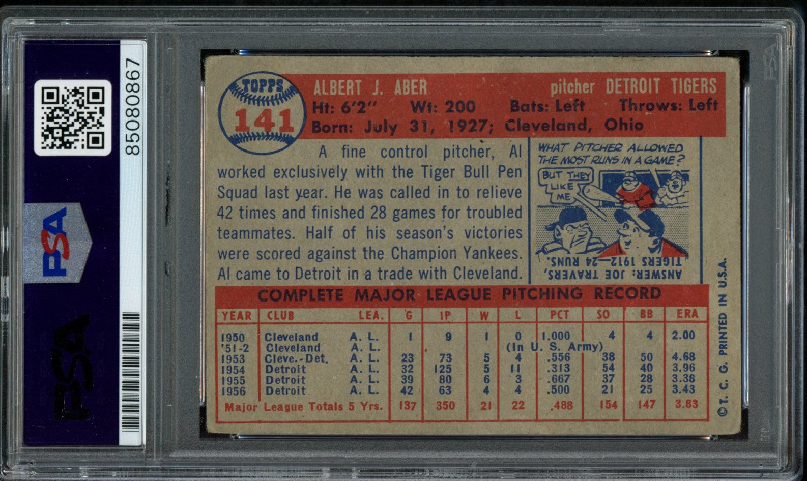 1957 TOPPS Al Aber #141 Auth Card Signed Detroit Tigers PSA/DNA 184110