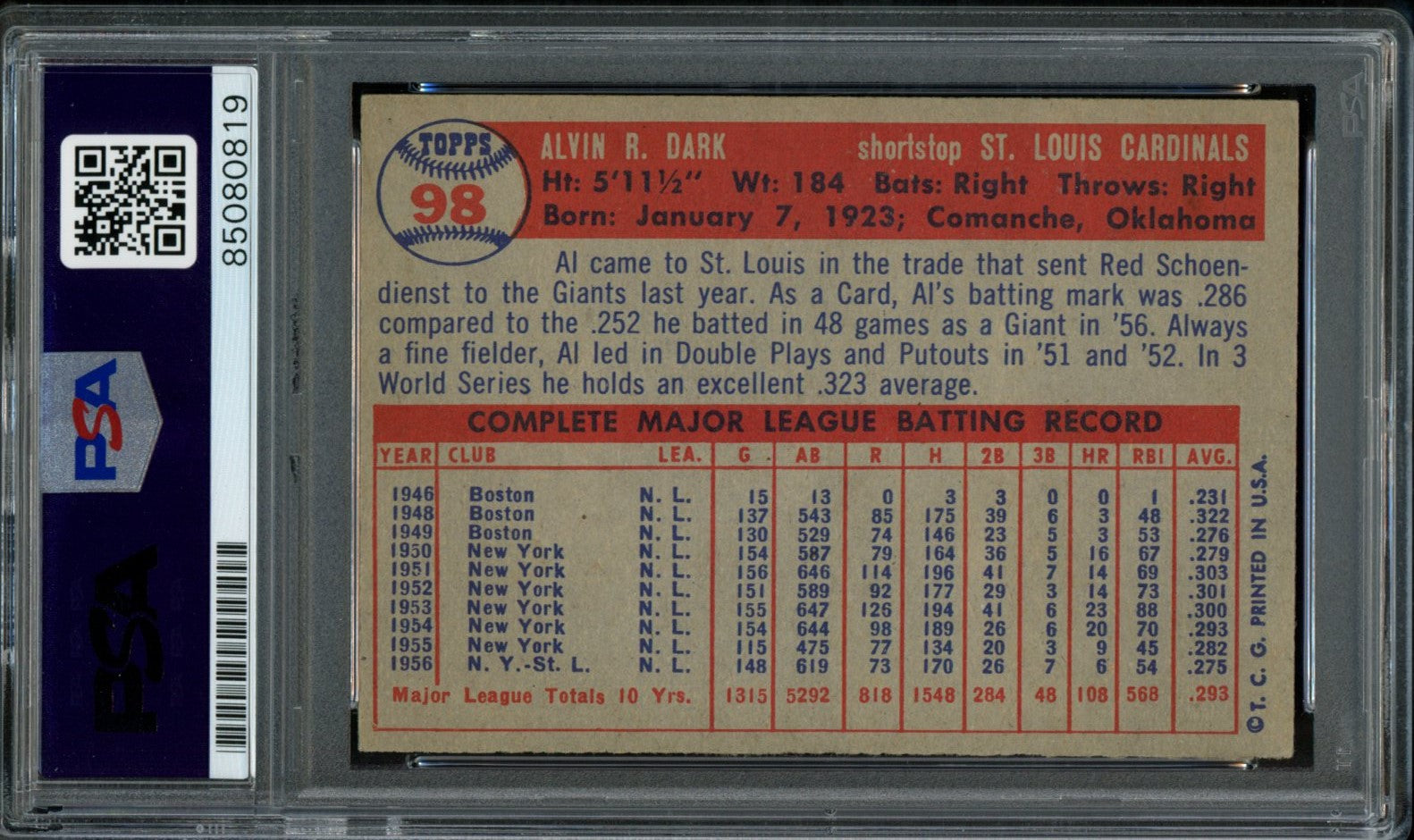 1957 TOPPS Alvin Dark #98 Auth Card Signed St. Louis Cardinals PSA/DNA 184121