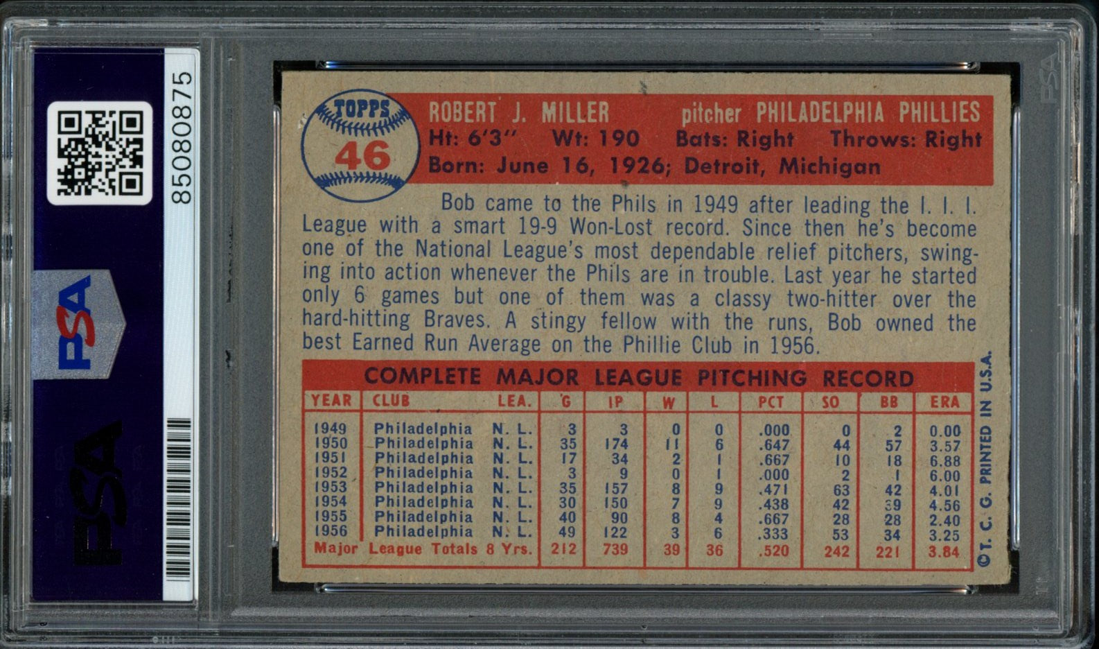 1957 TOPPS Bob Miller #46 Auth Card Signed Philadelphia Phillies PSA/DNA 184113