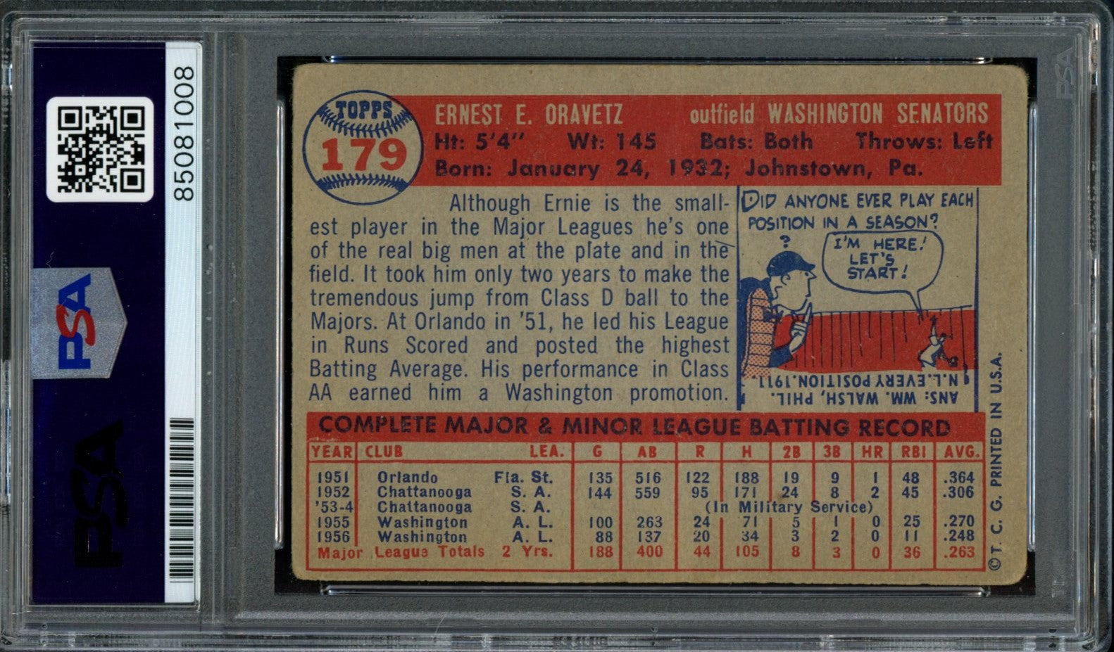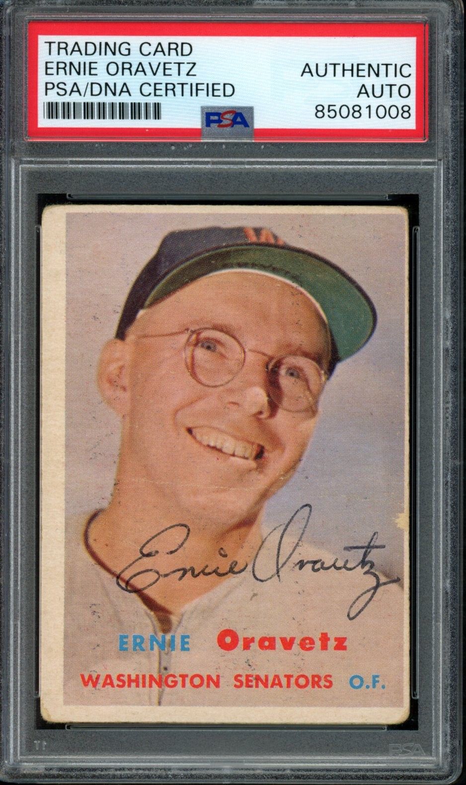 1957 TOPPS Ernie Oravetz #179 Auth Card Signed Senators PSA/DNA 184081