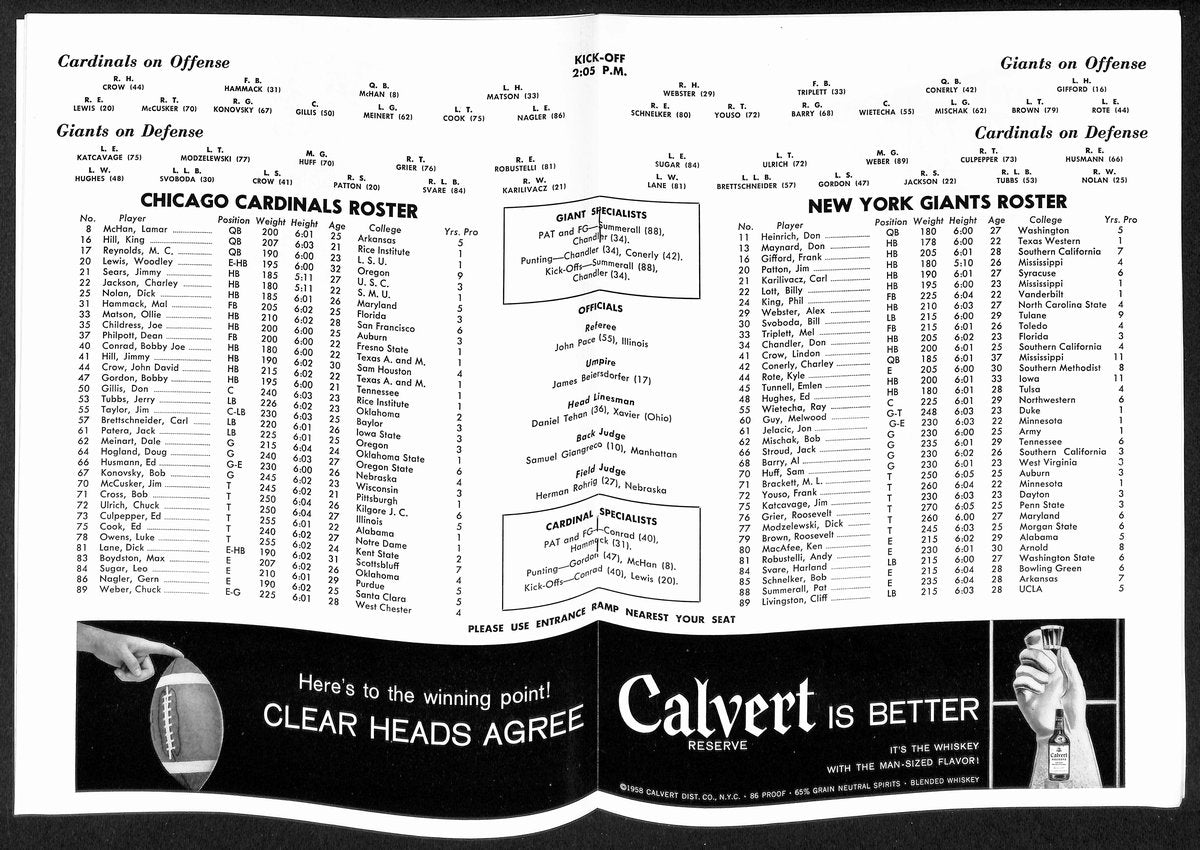 1958 New York Giants vs. Chicago Cardinals NFL Football Game Program 192900