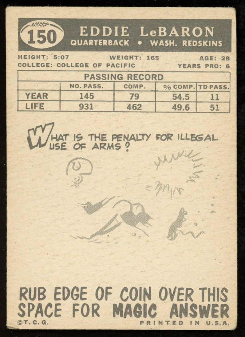 1959 TOPPS Football Card #150 Signed/Auto Eddie LeBaron Washington Redskins