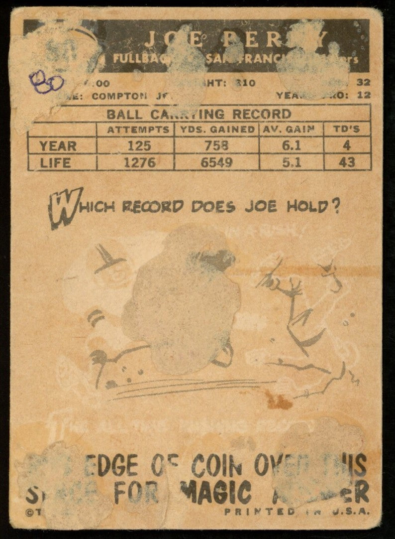 Offered is a 1959 TOPPS Football Card #80 Signed/Auto Joe Perry San Francisco 49'ers.