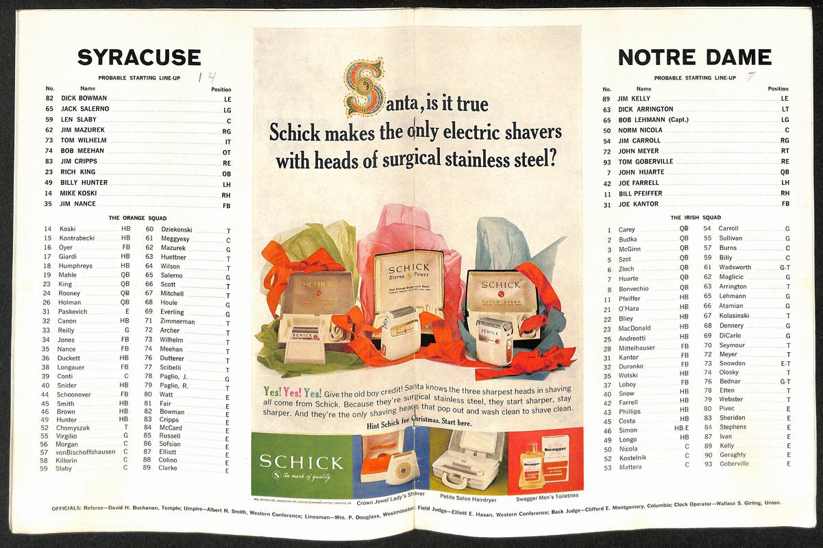 Offered is a 1963 Syracuse vs Notre Dame College Football Game Program 194559