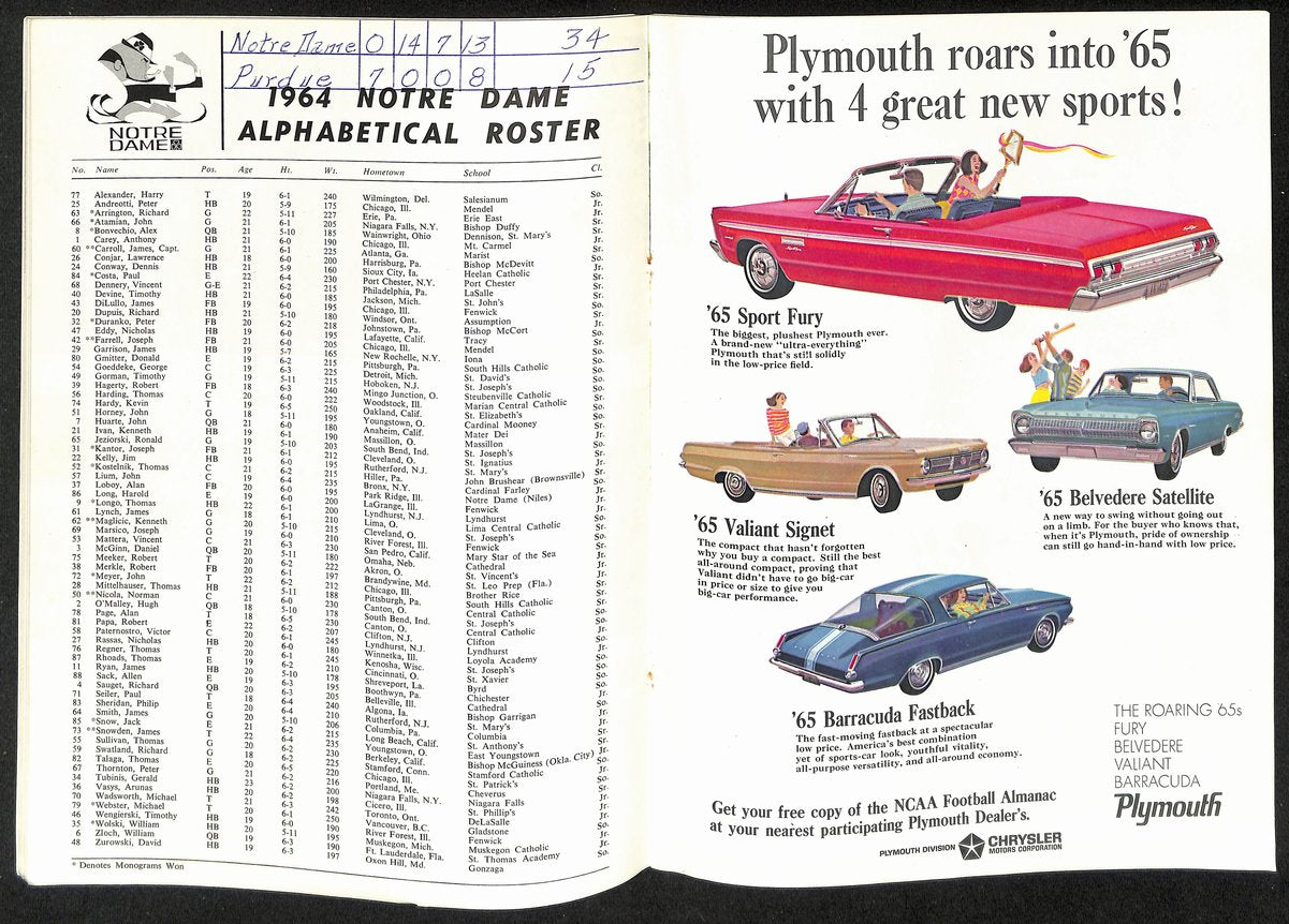 1964 Purdue vs Notre Dame College Football Game Program 194561