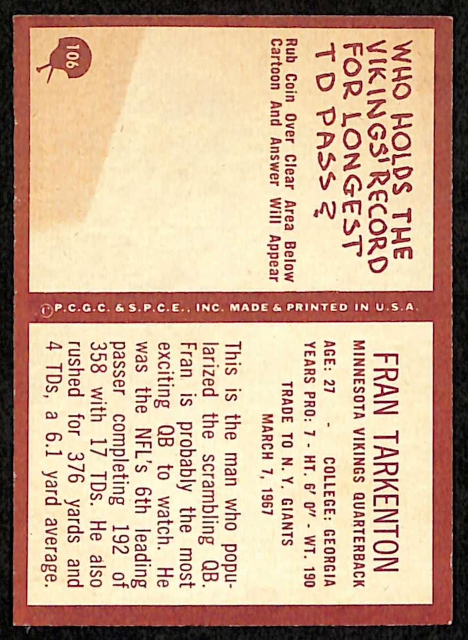 Offered is a 1967 Philadelphia Football Vikings Complete Team Set (12/12) Cards.