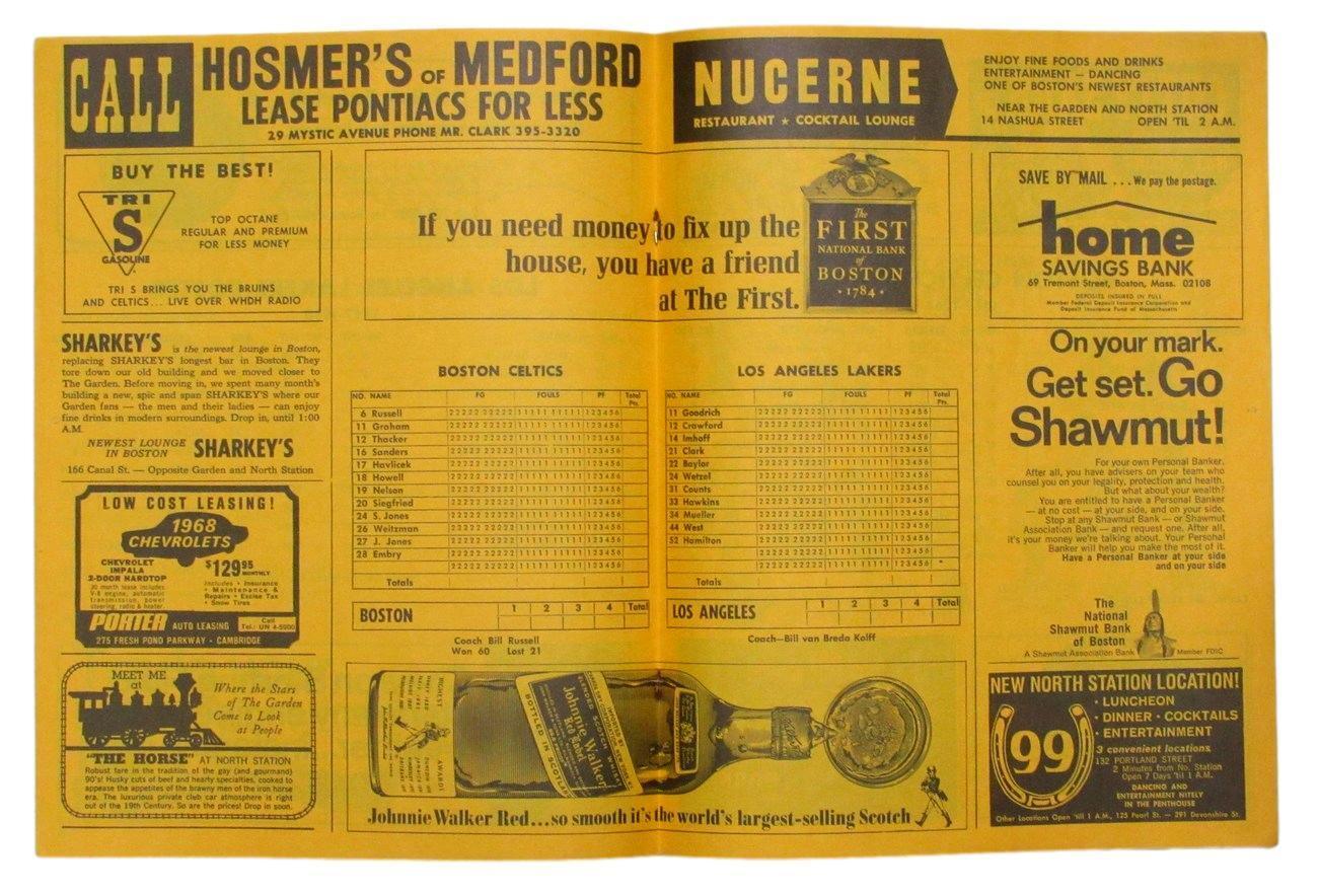 1968 Boston Celtics vs. Los Angeles Lakers Game 5 Championship Finals Program