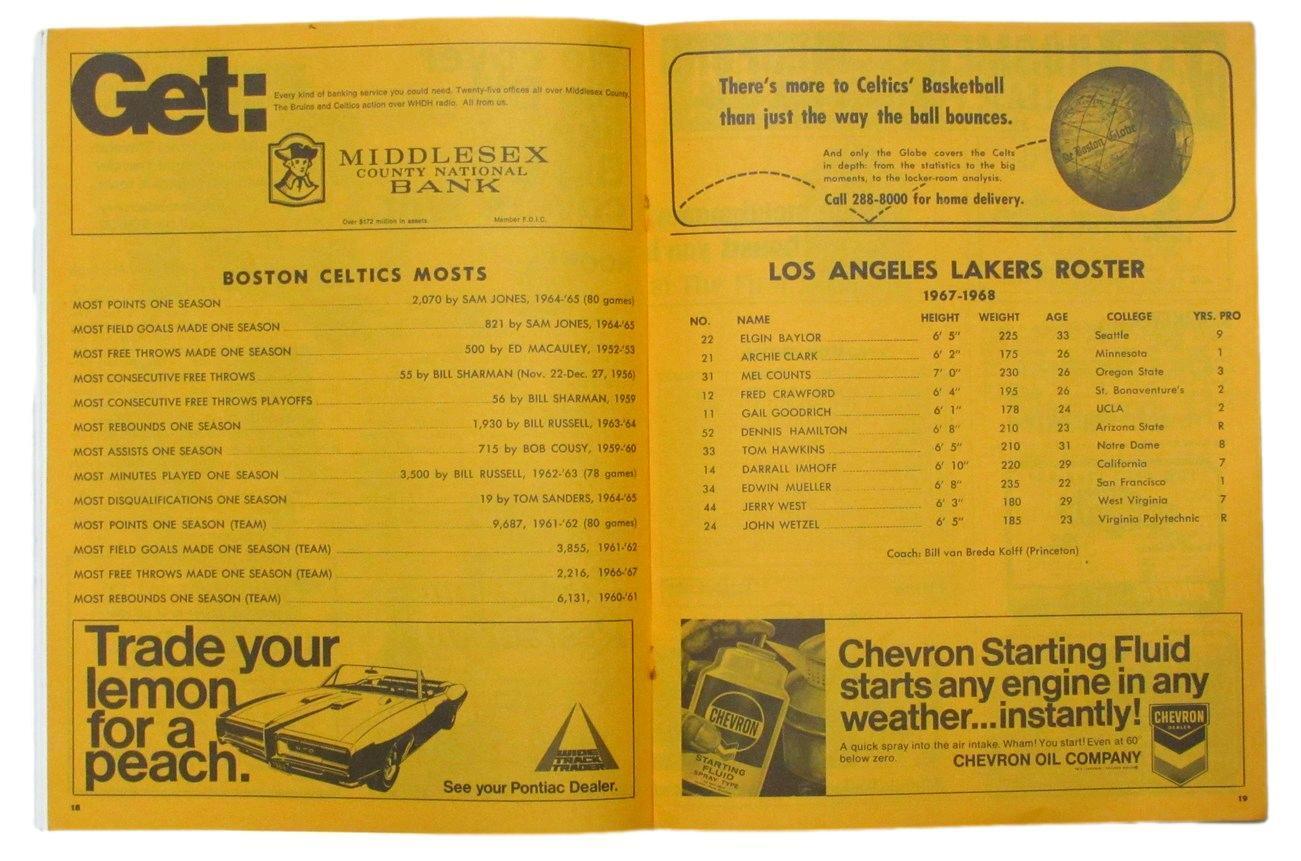Offered is a 1968 Boston Celtics vs. Los Angeles Lakers Game 5 Championship Boston Garden Program.