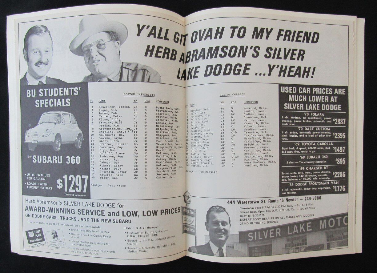 1970-71 Boston University vs. Boston College Ice Hockey Game Program 176224