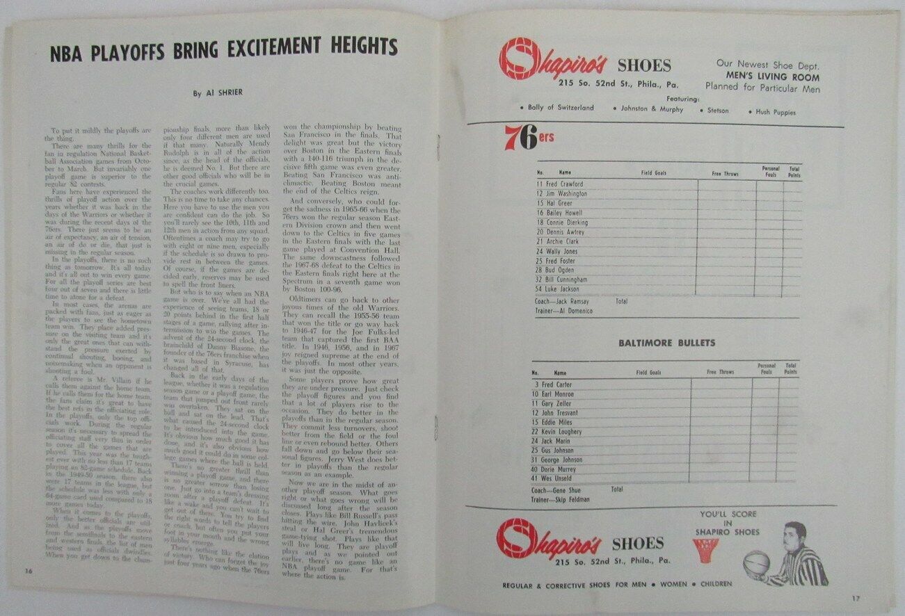 1971 NBA Playoffs Philadelphia 76ers vs Washington Bullets Game Program 156968
