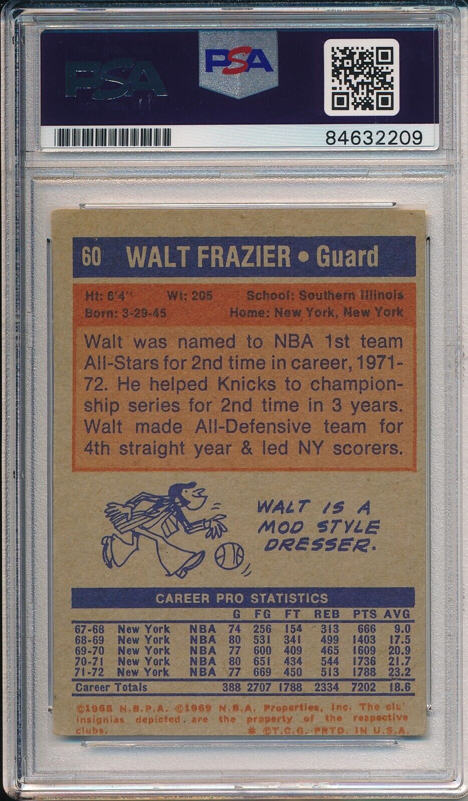 1972-73 Topps Walt Frazier HOF #60 Card Signed Knicks PSA/DNA
