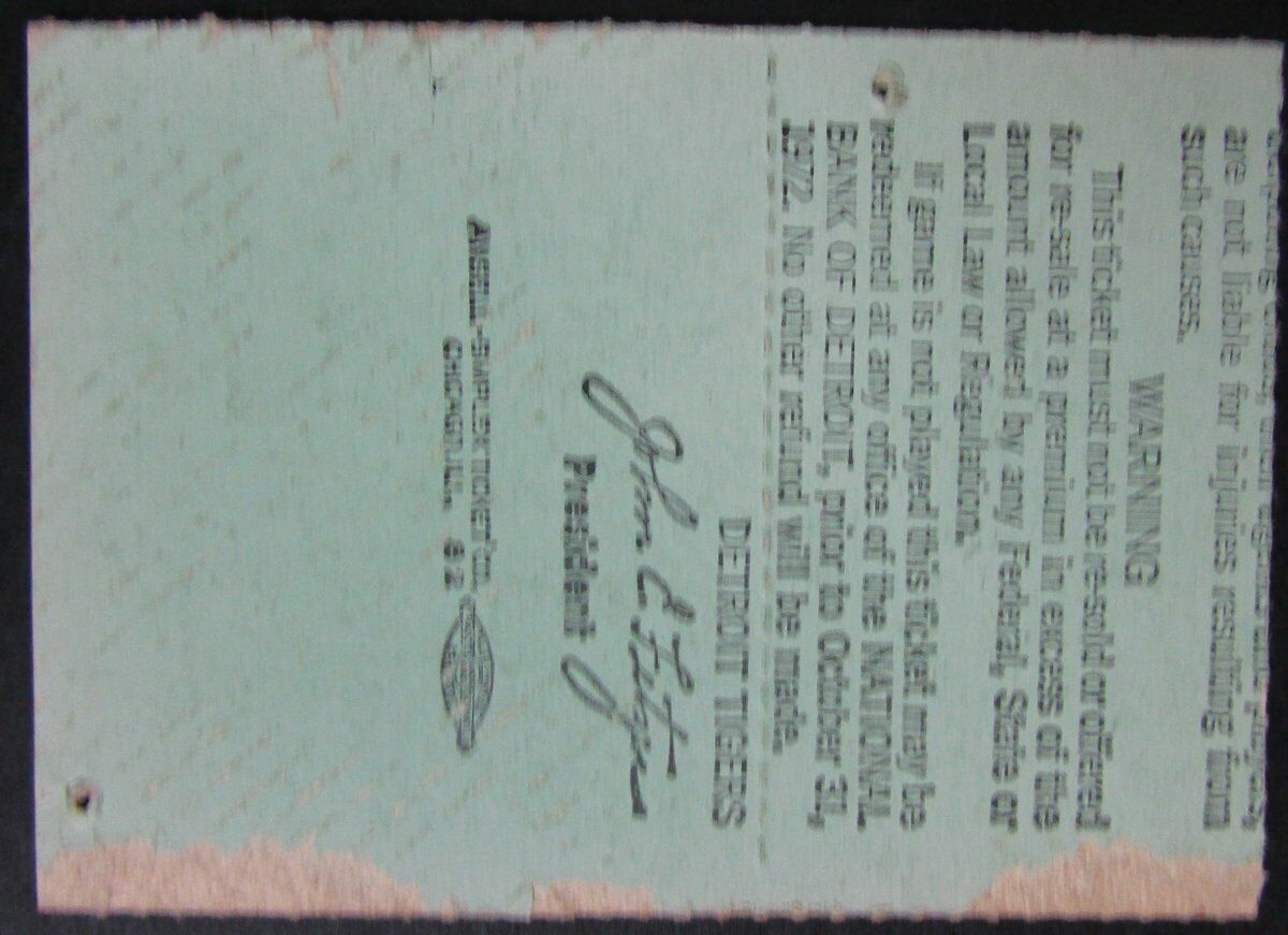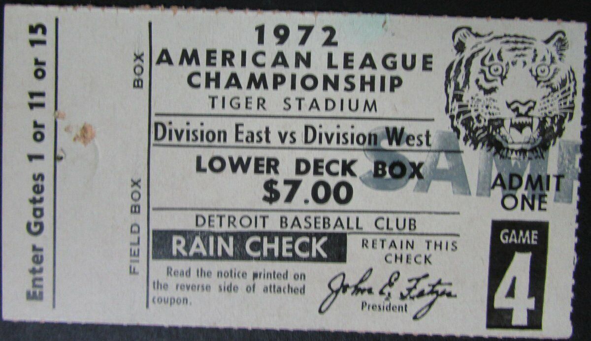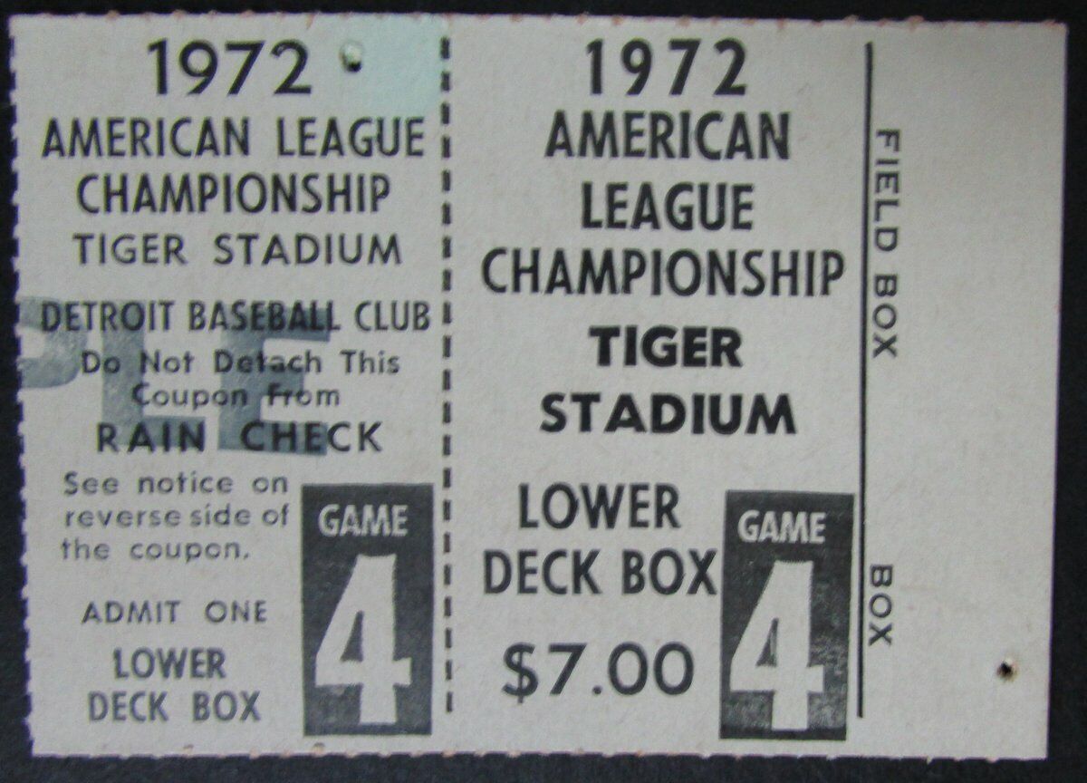 1972 Detroit Tigers Sample ALCS Ticket vs. Oakland A's Game 4 145444