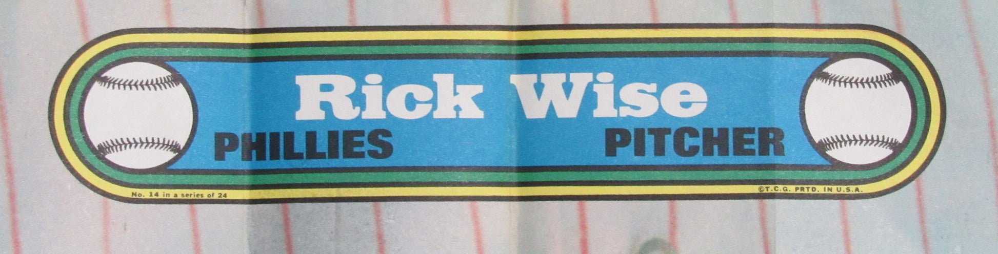 Offered is a 1972 Topps Baseball Poster #14 out of 24 Rick Wise Philadelphia Phillies Rare Vintage. It measures 9 7/16" x 18". It was distributed one poster per pack of cards.