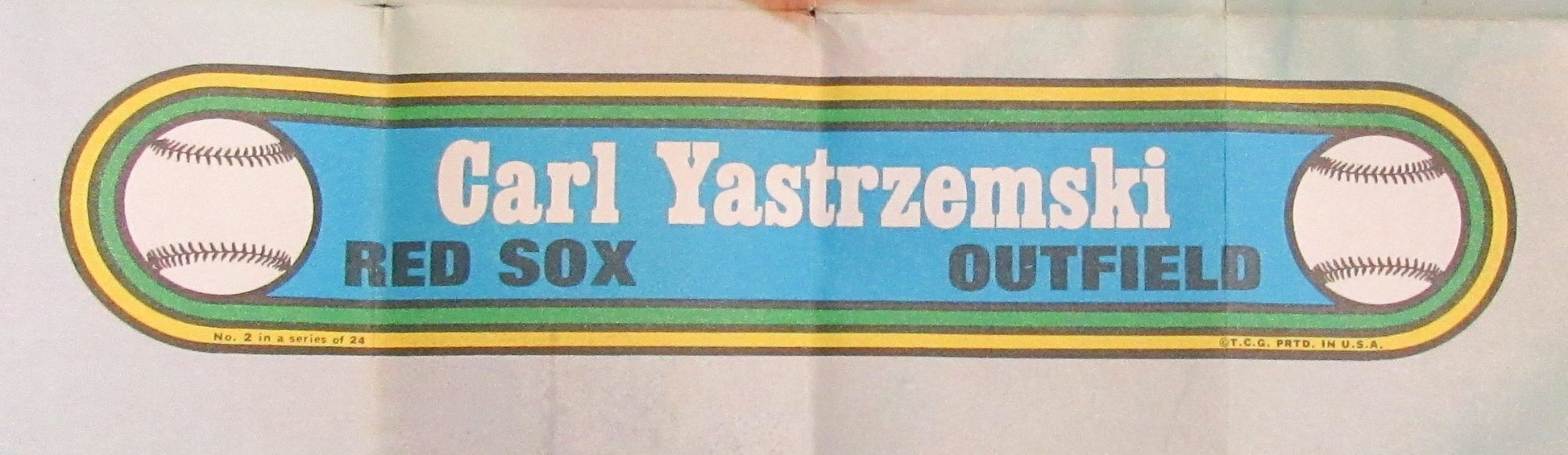 Offered is a 1972 Topps Baseball Poster #2 out of 24 Carl Yastrzemski Boston Red Sox Rare Vintage. It measures 9 7/16" x 18". It was distributed one poster per pack of cards.