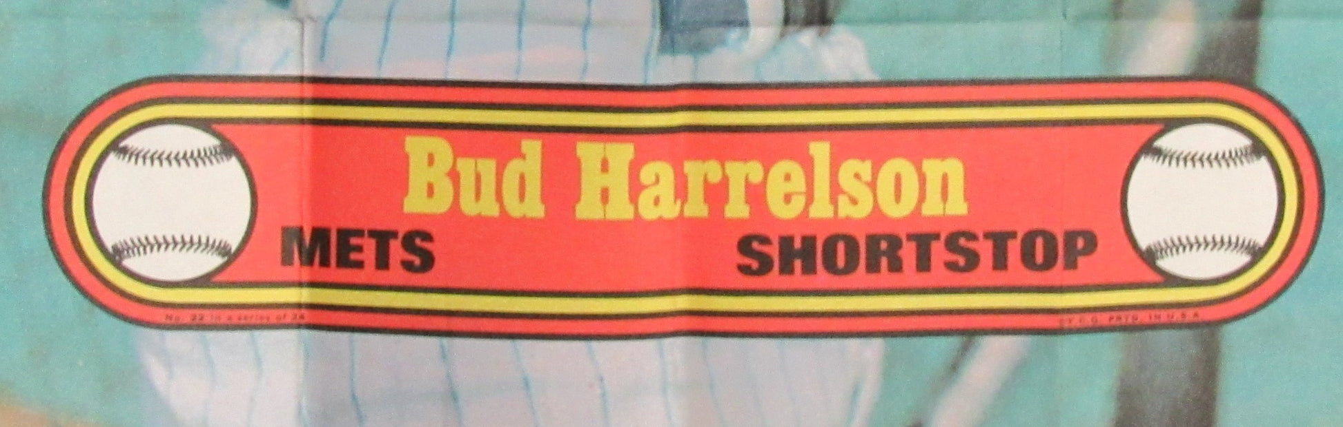 1972 Topps Baseball Poster #22 Bud Harrelson New York Mets Rare Vintage 200169