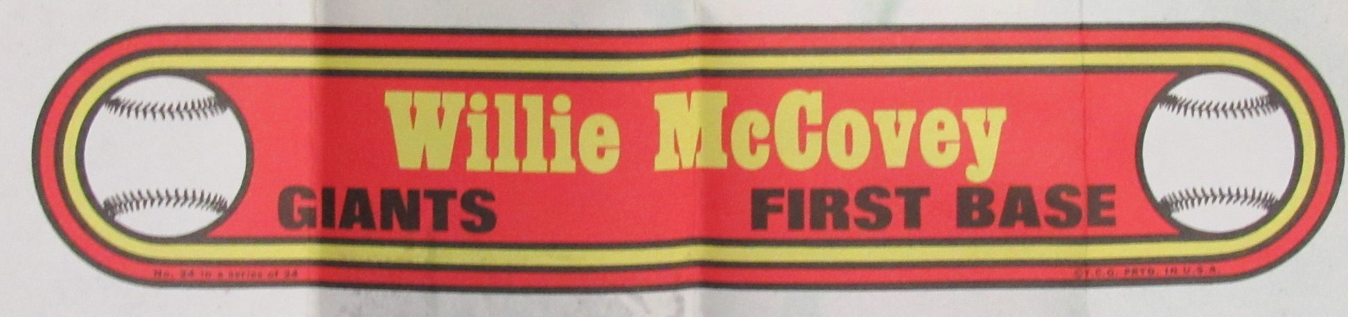 1972 Topps Baseball Poster #24 Willie McCovey HOF Giants Rare Vintage 200164