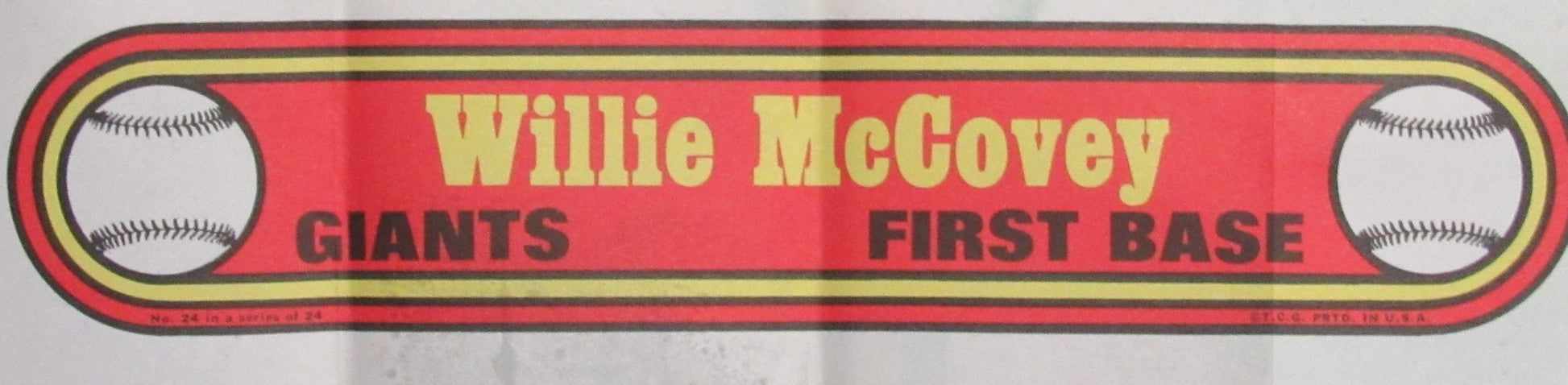 Offered is a 1972 Topps Baseball Poster #24 out of 24 Willie McCovey HOF San Francisco Giants Rare Vintage. It measures 9 7/16" x 18". It was distributed one poster per pack of cards.