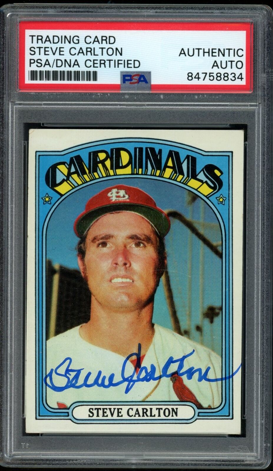 Offered is a 1972 TOPPS Steve Carlton HOF #420 Authentic Card Signed St. Louis Cardinals. This card comes encapsulated in a tamper-proof holder and autograph has been authenticated by PSA/DNA. The card in the picture is the actual original card that you will receive.