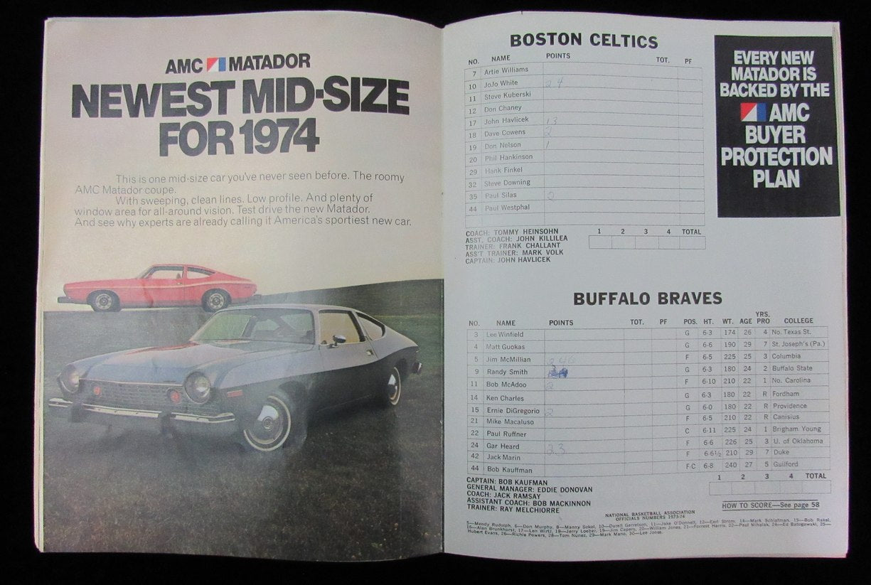 Offered is a 1974 NBA Playoffs Game Program Boston Celtics vs. Buffalo Braves.. NOTE: There is handwritten scoring on the Scorecard page.