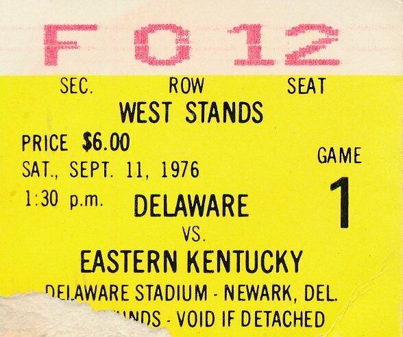 1976 Univ of Delaware vs. E. Kentucky College Football Game Ticket Stub 1440580