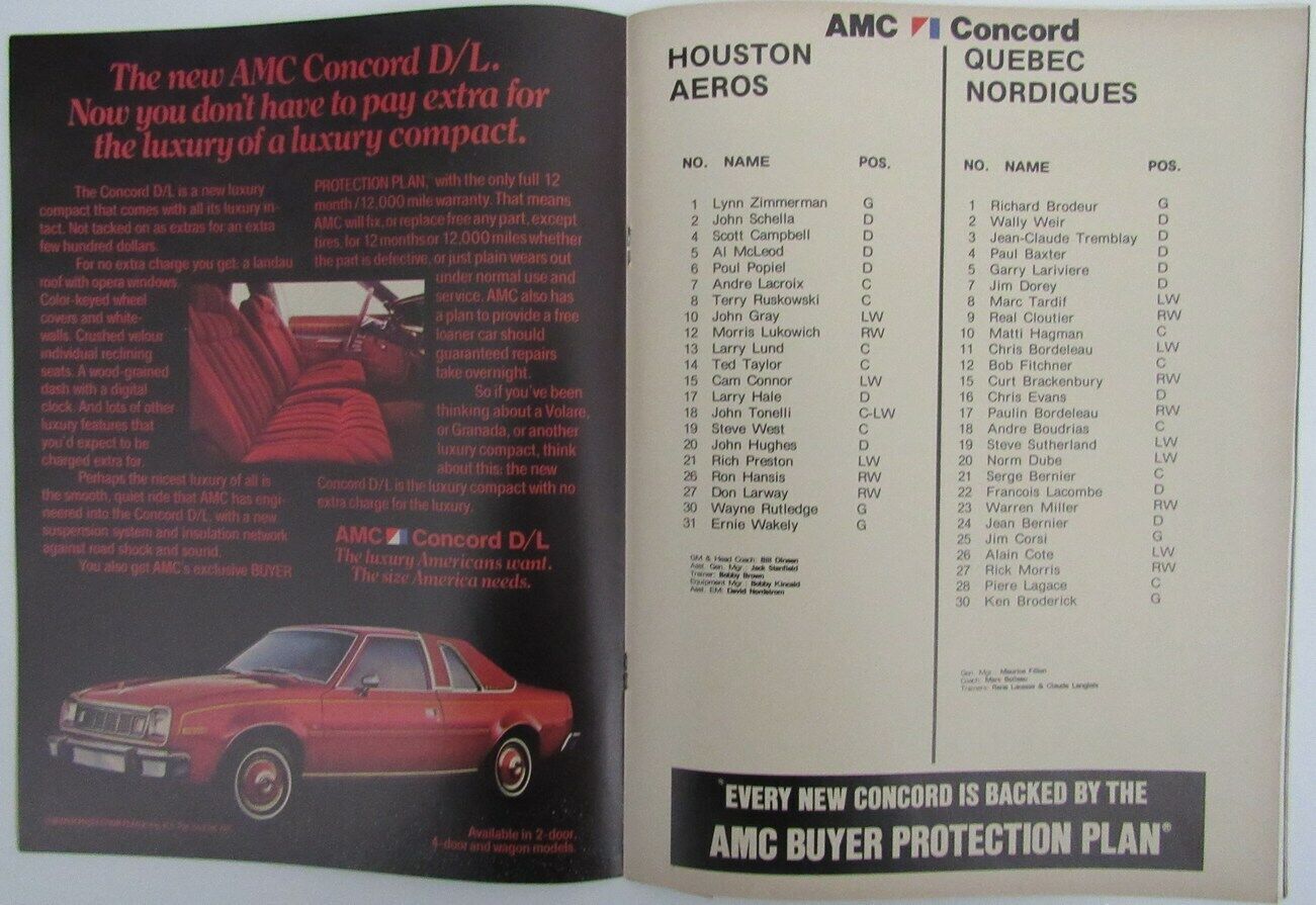 1977-78 Houston Aeros vs. Quebec Nordiques WHA Hockey Program 150613