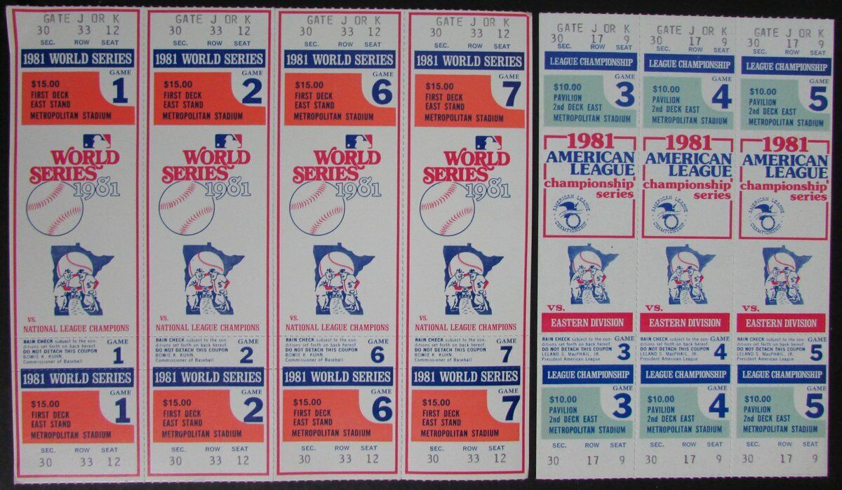 1981 Minnesota Twins Phantom World Series and ALCS Full Tickets 145454