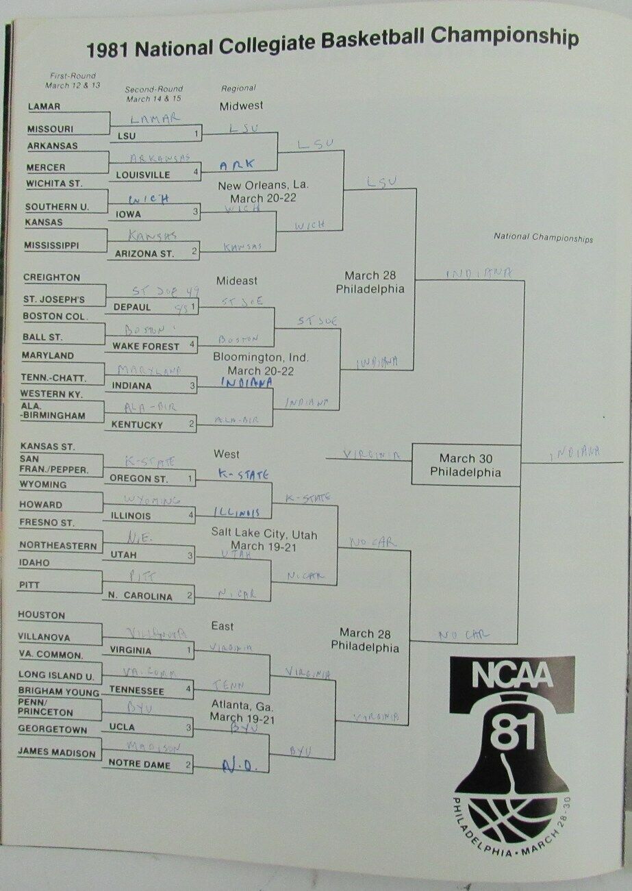 1981 NCAA Men's Basketball Championship 1st & 2nd Rounds Program LA 159085