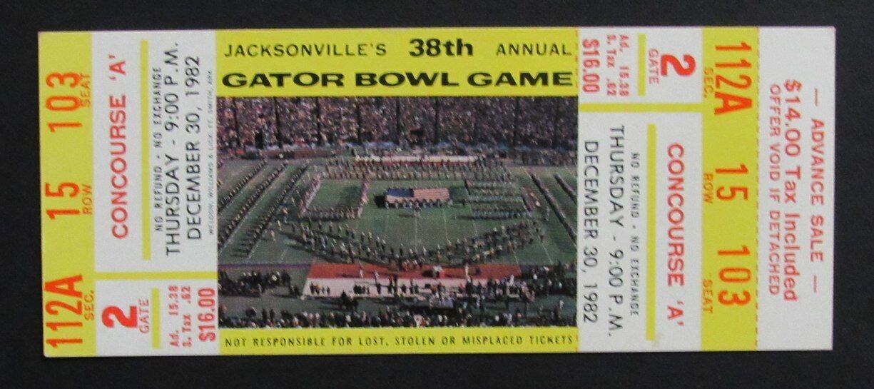 1982 Gator Bowl Football Game Full Ticket West Virginia vs. Florida State