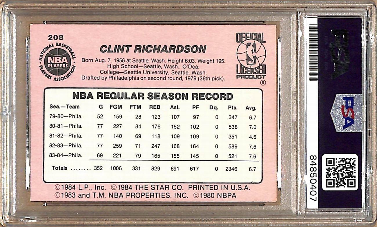 1984-85 Star Company #208 Clint Richardson 76ers Signed Card PSA/DNA 178895