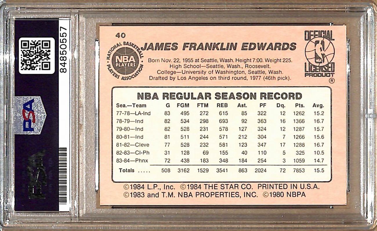 1984-85 Star Company #40 James Edwards Suns Signed/Auto Card PSA/DNA 178968