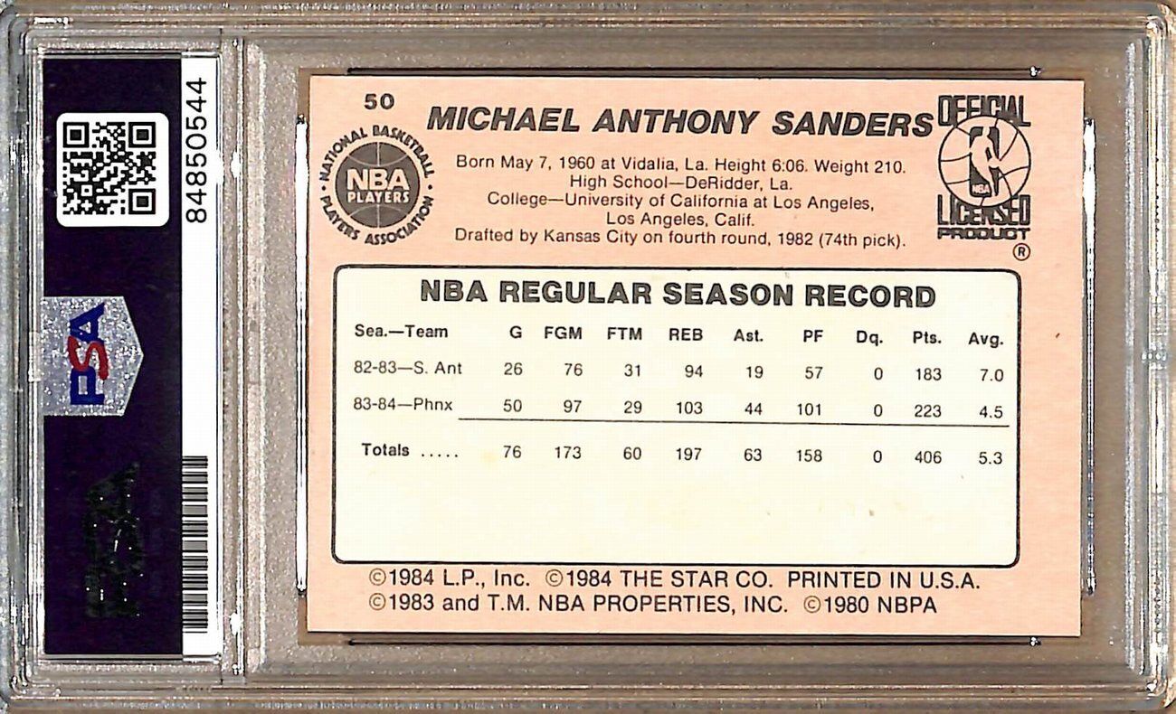 1984-85 Star Company #50 Mike Sanders Suns Signed/Auto Card PSA/DNA 178967