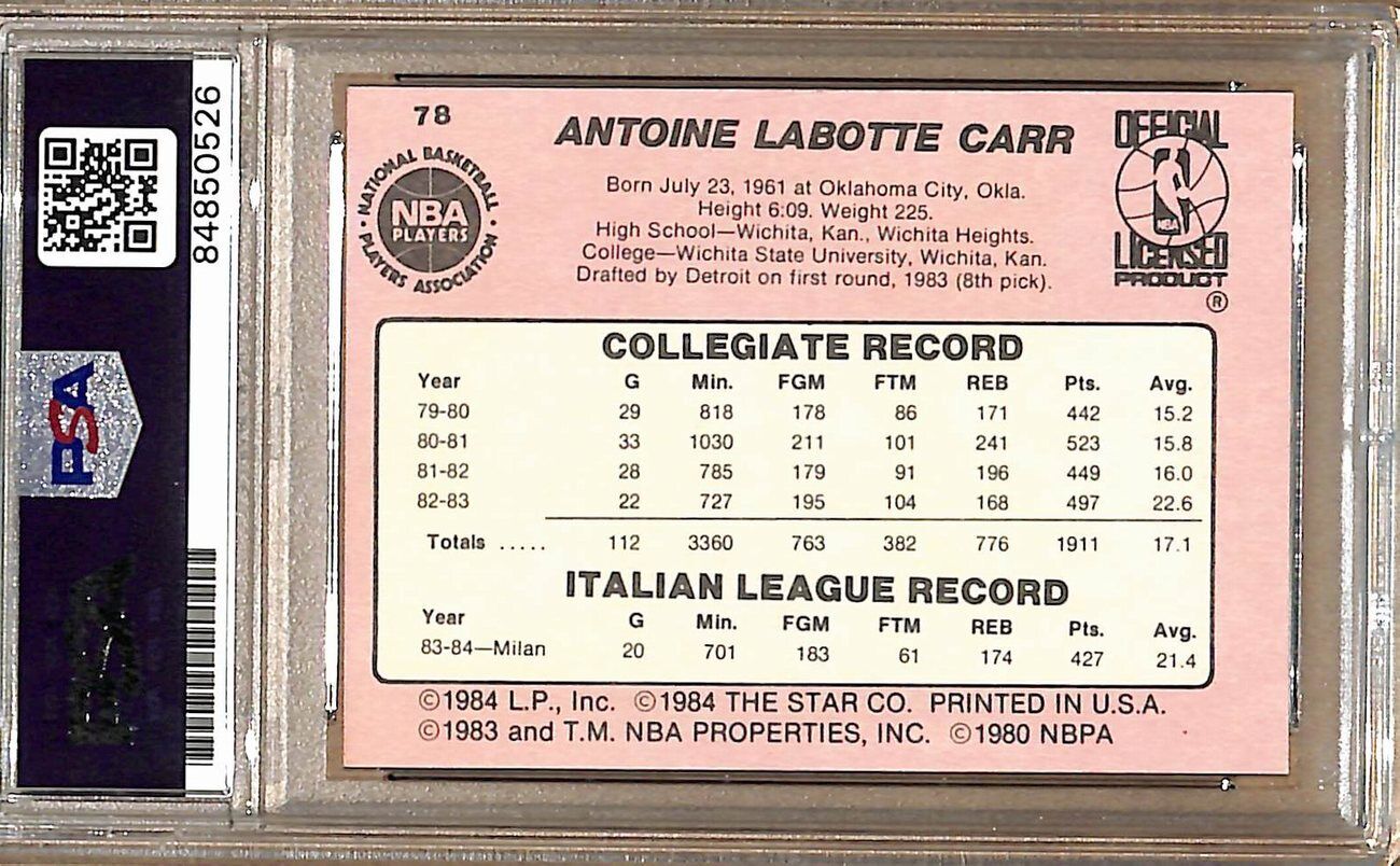 1984-85 Star Company #78 Antoine Carr Hawks Signed/Auto Card PSA/DNA 178947