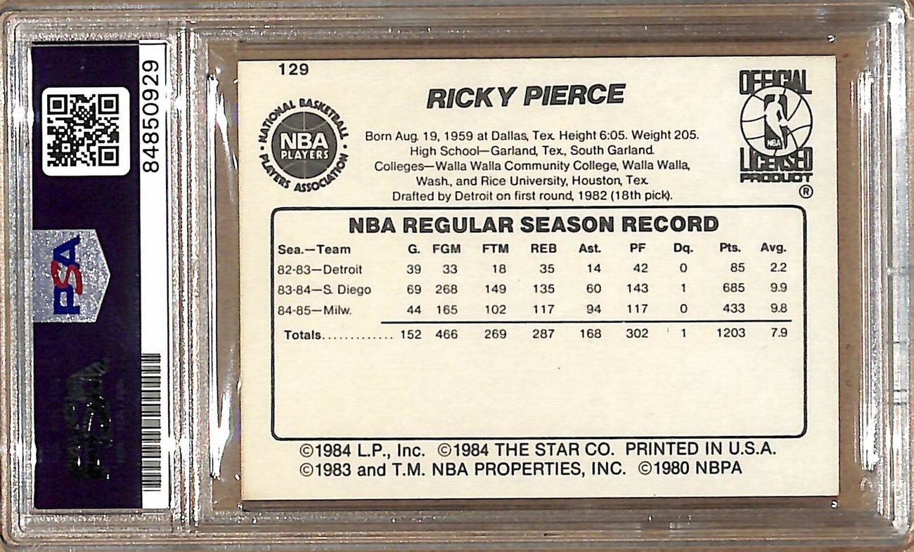 1985-86 Star Company #129 Ricky Pierce Bucks Signed/Auto Card PSA/DNA 178996