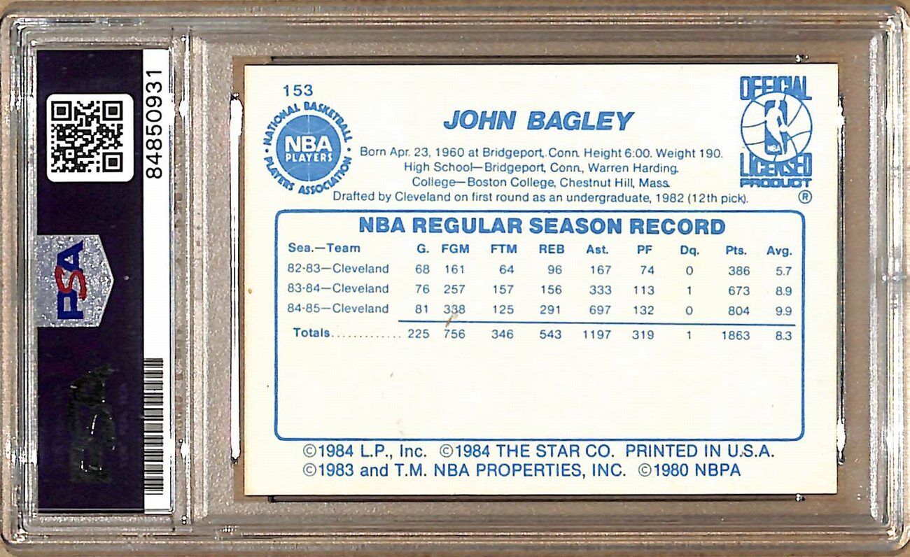 1985-86 Star Company #153 John Bagley Cavaliers Signed/Auto Card PSA/DNA 178893