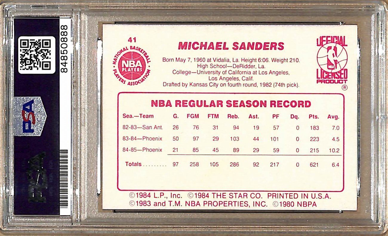 1985-86 Star Company #41 Mike Sanders Suns Signed/Auto Card PSA/DNA 178980