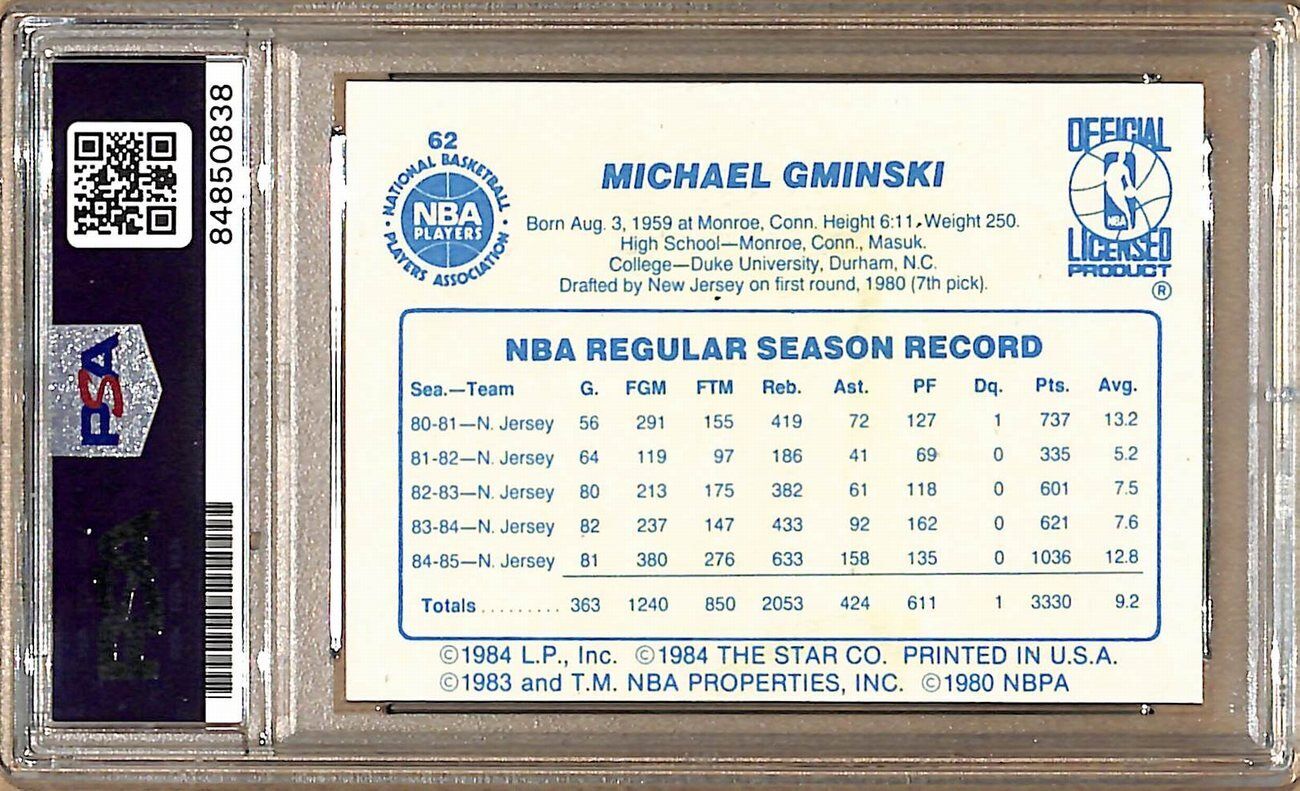 1985-86 Star Company #62 Mike Gminski Nets Signed/Auto Card PSA/DNA 178851