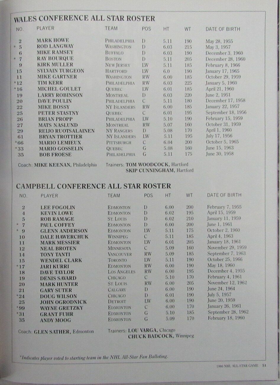 1986 NHL All-Star Game Program Lemieux/Bossy/Gretzky/Messier/Coffey 177176