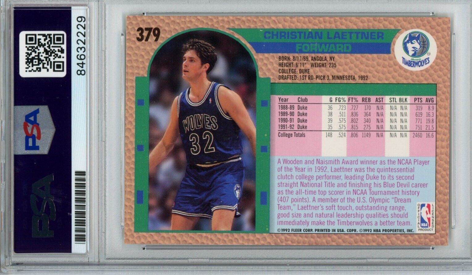1992-93 FLEER Rookie #379 Christian Laettner Timberwolves PSA/DNA