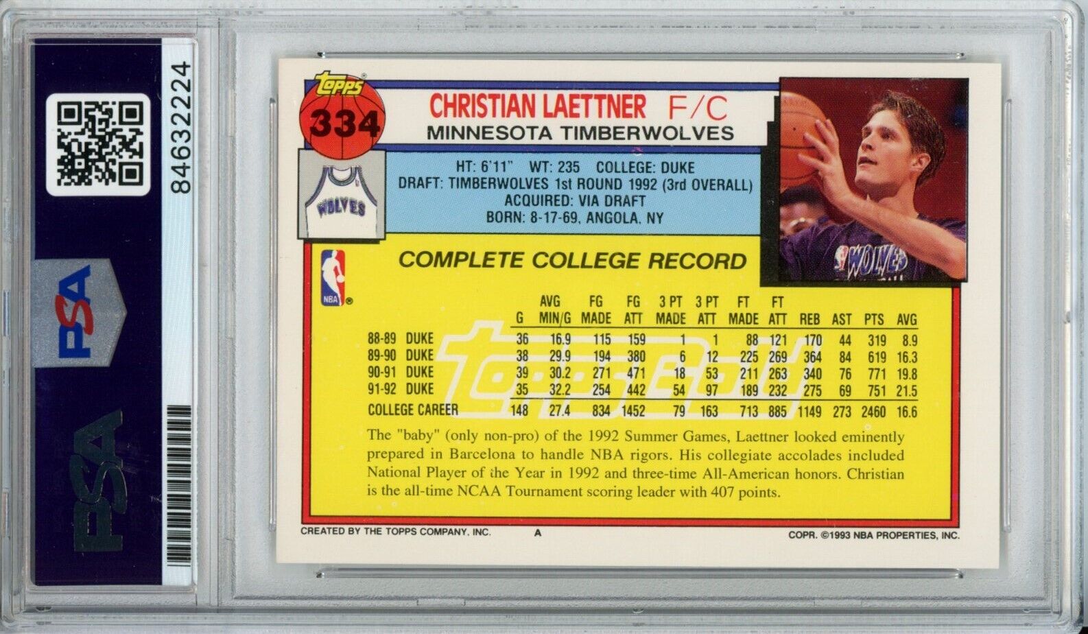 1992-93 TOPPS Gold Rookie #334 Christian Laettner Timberwolves PSA/DNA