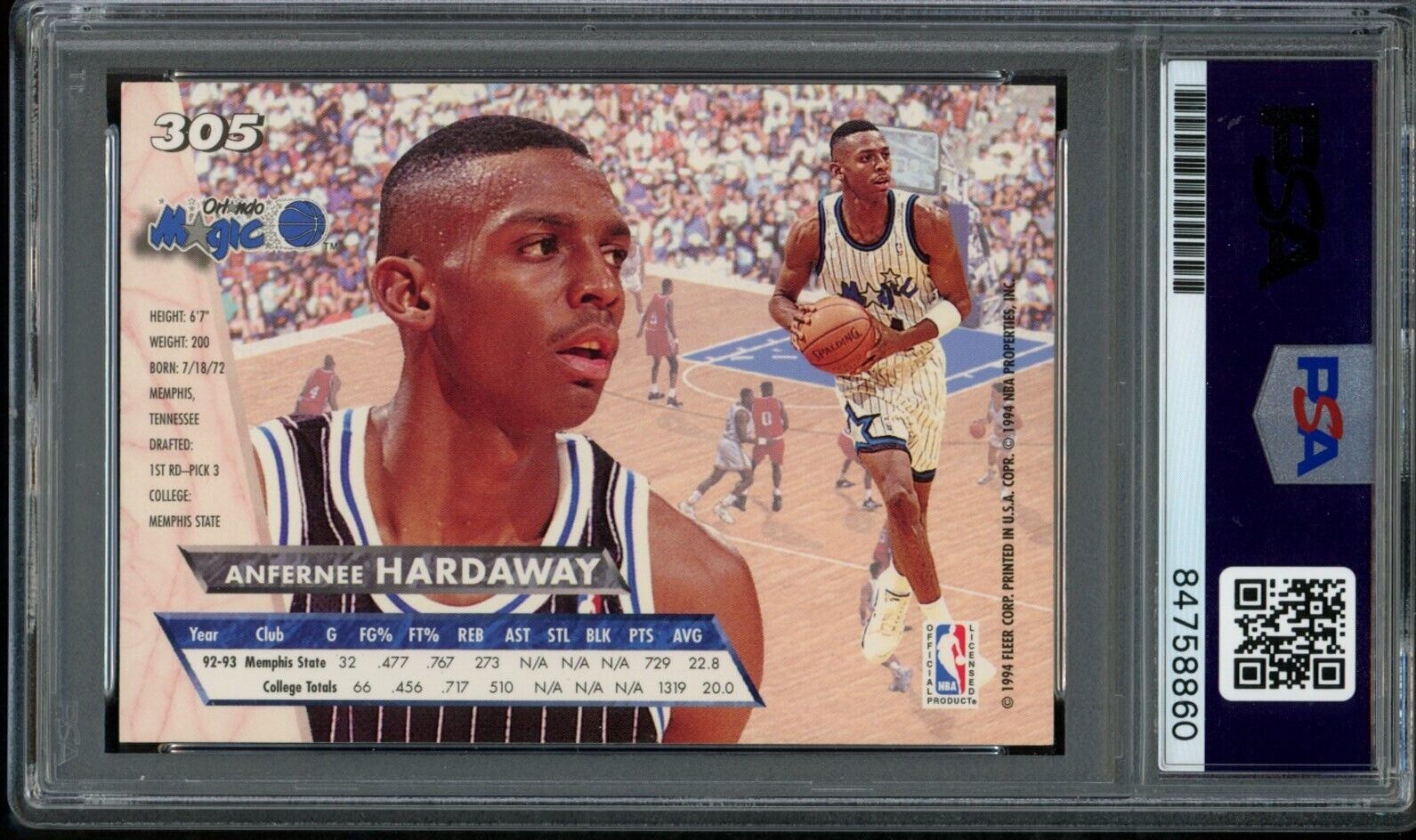 1993-94 Fleer Ultra Anfernee Hardaway #305 Rookie Card Signed Magic PSA/DNA