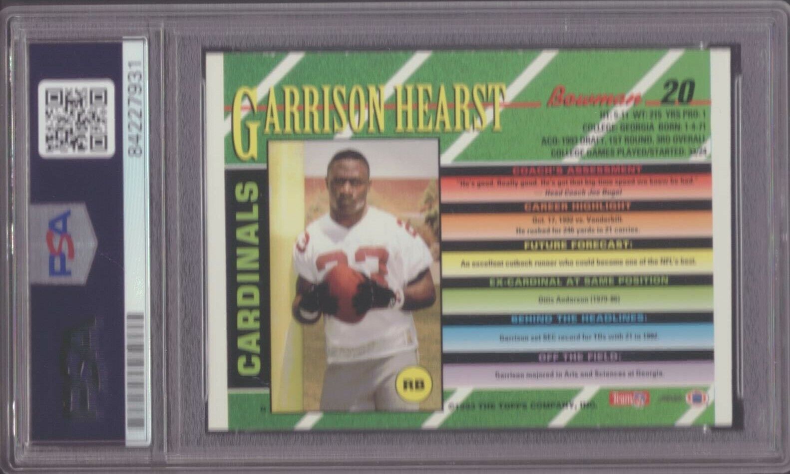 1993 Bowman #20 Garrison Hearst Cardinals Signed/Auto Card PSA/DNA 152524